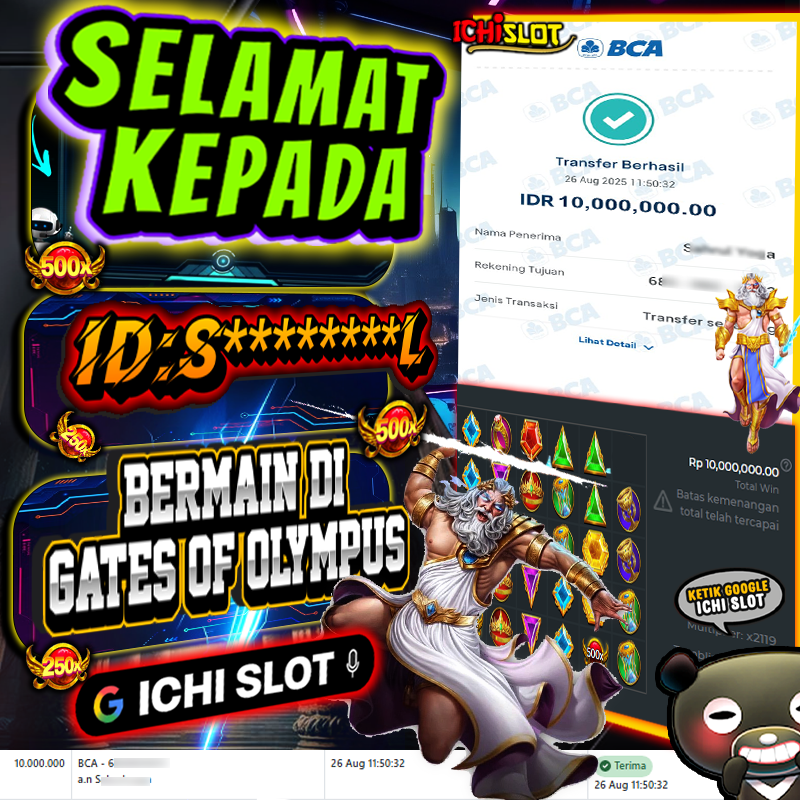ICHISLOT JACKPOT GATES OF OLYMPUS Rp.10.000.000,- LUNAS