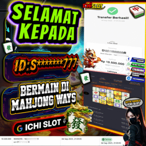 Selamat kepada User id : S*****777 Telah berhasil mendapatkan kemenangan besar pada permainan MAHJONG WAYS kemenangan Sebesar Rp.10.500.000, Setelah mengisi formulir withdraw dengan kurung waktu hanya 5 – 10 menit pihak ichislot sudah melakukan transfer kepada pemilik Userid dan dana sudah dapat di cairkan oleh pemenang. Bukti pembayaran yang kami berikan merupakan bukti pembayaran yang SAH / VALID yang langung di dapatkan melaui tanda transfer transaksi dari Bank yang di tuju.