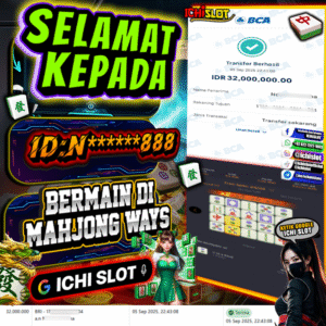 Selamat kepada User id : N*****888 Telah berhasil mendapatkan kemenangan besar pada permainan MAHJONG WAYS kemenangan Sebesar Rp.32.000.000, Setelah mengisi formulir withdraw dengan kurung waktu hanya 5 – 10 menit pihak ichislot sudah melakukan transfer kepada pemilik Userid dan dana sudah dapat di cairkan oleh pemenang. Bukti pembayaran yang kami berikan merupakan bukti pembayaran yang SAH / VALID yang langung di dapatkan melaui tanda transfer transaksi dari Bank yang di tuju.