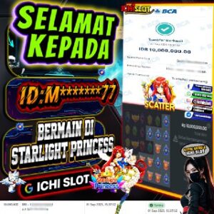Selamat kepada User id : M*****77 Telah berhasil mendapatkan kemenangan besar pada permainan STARLIGHT PRINCESS kemenangan Sebesar Rp.10.000.000, Setelah mengisi formulir withdraw dengan kurung waktu hanya 5 – 10 menit pihak ichislot sudah melakukan transfer kepada pemilik Userid dan dana sudah dapat di cairkan oleh pemenang. Bukti pembayaran yang kami berikan merupakan bukti pembayaran yang SAH / VALID yang langung di dapatkan melaui tanda transfer transaksi dari Bank yang di tuju.